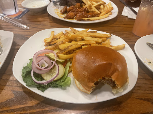Had the combo steak and chicken very good . The French fries were ok, but to make it better would have been steak fries . Parking: Close to 100 parking spot Kid-friendliness: Good kids menu. Wheelchair accessibility: At the door parking. No automatic door opener. Tuff getting in alone.
