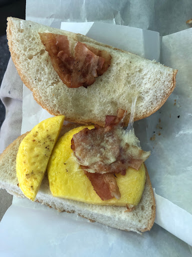 Bacon egg and cheese with eggs fried: little to no cheese and just a dry Sandwhich. Better off going to a deli.