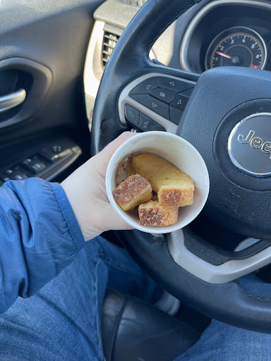 My husband and I wanted a little something to snack on. We ended up getting the cinnamon crumb cake and the chocolate chip scone. Both were warm and delicious! Will definitely be back!