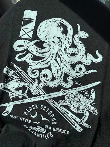Black Octopus is amazing. This is as local as it gets - owned/operated/designed by Missy and Jim; amazing people and business owners. I've bought multiple pieces of clothing here - several shirts, sweatpants, hoodies that are lightweight and appropriate for Charleston weather.